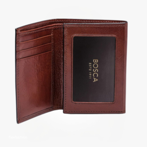 Men’s Leather Wallet: Featuring a classic design with a modern style, this executive wallet is made with simplicity and storage in mind; features 5 card slots, 2 full-length bill pockets, 2 hidden pockets, and a clear ID window with RFID security lining.