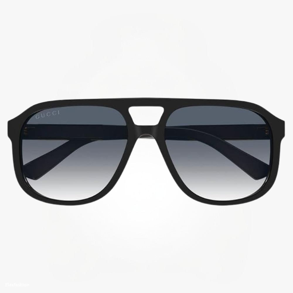 Gucci Model: GG1188S Style: Full Rim Pilot Shape.Gender: Unisex Frame/Temple: Black/Gold-Logo-002.Grey Gradient Size: Lens-58 Bridge-17 B-55 Temple-140mm.