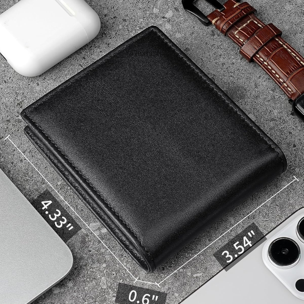 Men’s Leather Bifold Wallet 7 Powerful Secure RFID Blocking Design