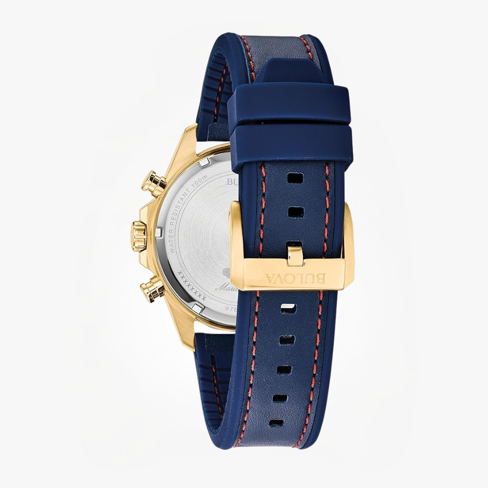 The Men’s Marine Star Series B Chronograph Watch is designed for bold style and precision performance. Featuring a striking blue dial with gold-tone stainless steel construction, it delivers a premium and sporty look perfect for any occasion.