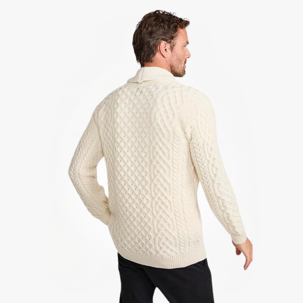 The Men’s Cardigan – 100% Merino Wool Irish Aran Cable Knit Sweater blends traditional craftsmanship with modern comfort. Featuring an authentic Aran cable knit design, this cardigan offers a timeless look inspired by Irish heritage.