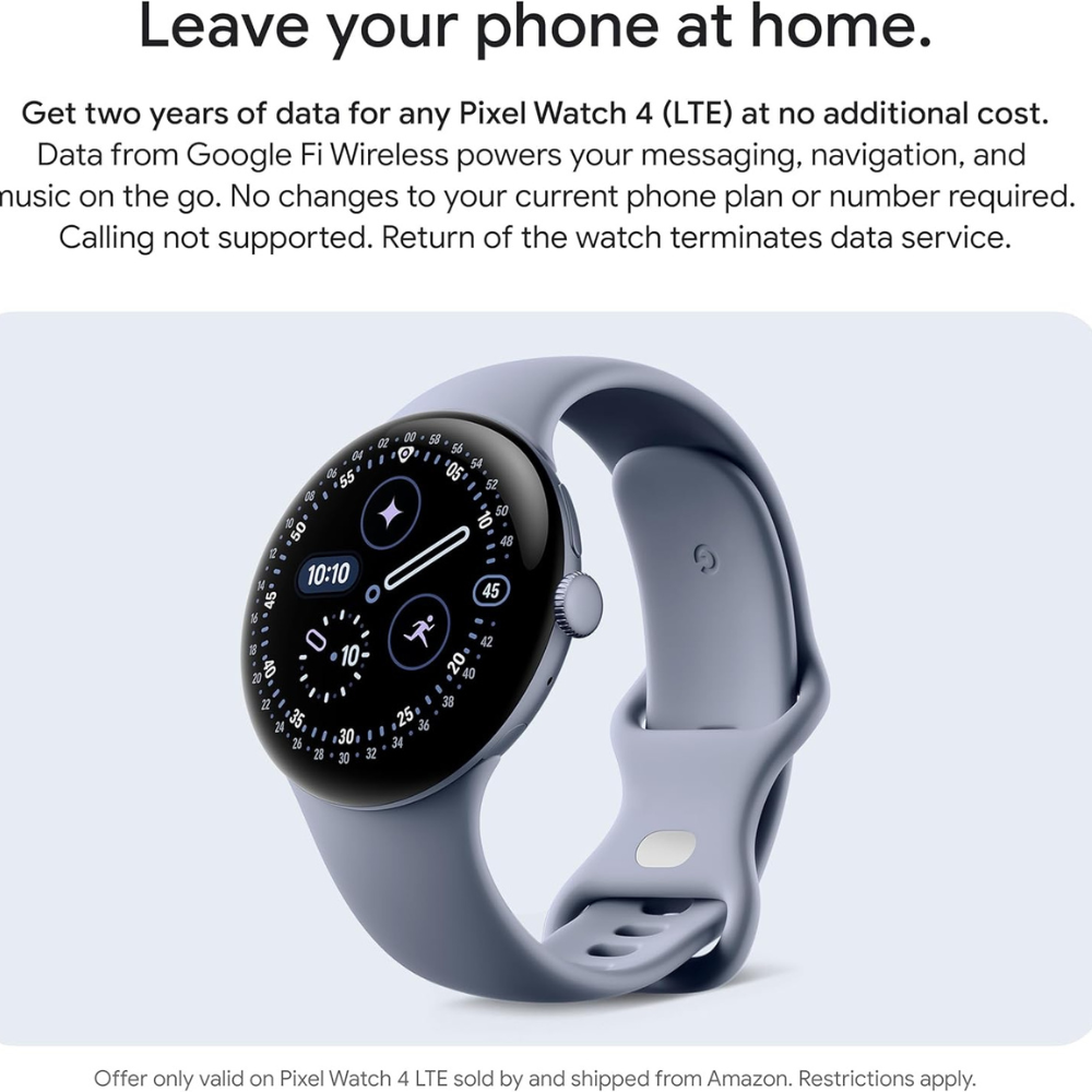 Get 2yrs of data and texting included when you buy Pixel Watch 4 LTE[23]; Google Fi powers your messaging, navigation, and music on the go; offer only valid on Pixel Watch 4 LTE sold by and shipped from select sales channels.